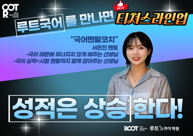 루트학원은 (한 사람이 모든 과목을 하는) 종합학원이 아닙니다! 각 과목별 선생님들로 구성된 탄탄한 시스템을 구축하고 있는 전문학원입니다! 루트 국어학원 SYSTEM을 소개합니다! 1. Korean Teachers Lineup "국어 멘탈 코치" 서은진 멘토 -국어 때문에 무너지지 않게 해주는 선생님 -국어 실력 + 시험 멘탈까지 함께 잡아주는 선생님 "국어 독해 설계자" 박연화 멘토 -감으로 푸는 국어가 아니라 구조로 읽게 만들어주는 선생님 -국어가 체계적으로 잘하는 지문이 보이기 시작하게 만들어 주는 선생님 "국어 문해력 코치" 최지현 멘토 -읽기 쓰기 기본 근육을 키워 주는 선생님 -국어의 뿌리를 잡아주고 국어....... <img src="https://blogthumb.pstatic.net/MjAyNjAyMTRfMjky/MDAxNzcxMDM2NTA2NTUz.FoKgdHSAzXYIhF1TsMip18kRdSduoHAIC5wPTVUbSXUg.8EjKOnhlfHHWSu38yapeu9iZzf4NxYdXqwZlCMVgWwog.PNG/5.png?type=s3" />