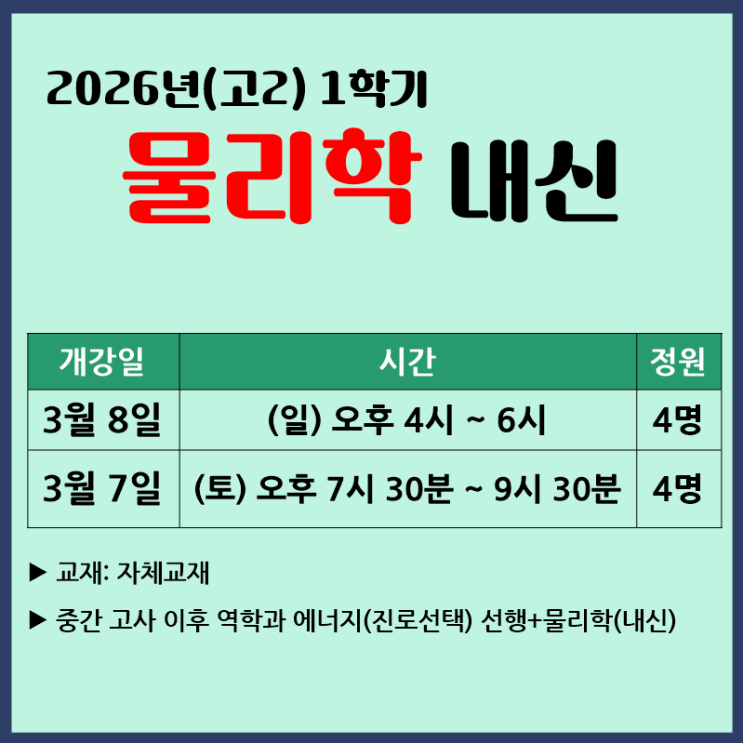 2026년 물리학 내신