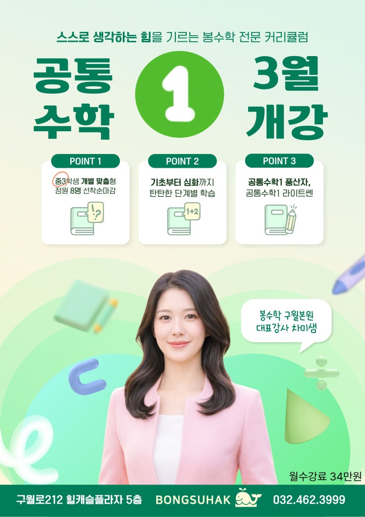 구월동 수학학원) 봉수학 봄엔 봉수학이지~공통수학1 중3대상 3월 개강!!