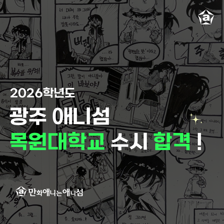 안녕하세요, 광주 애니섬 만화학원입니다 ^^ 2026학년도 목원대학교 수시합격을 진심으로 축하합니다 ! 오랜 시간 성실하게 준비해 온 결과, 광주 애니섬 만화학원 학생들이 목원대학교 수시전형에 최종 합격하는 값진 성과를 이루어냈습니다. 그동안 애니섬 만화학원에서 보여준 노력과 끈기가 오늘의 결과로 이어진 것을 정말 자랑스럽게 생각합니다.^^ 입시는 단순한 시험 이상의 의미를 지닙니다. 자신과의 싸움이자, 자신의 한계를 시험하는 과정이기 때문입니다. 이번 시험 주제인 ‘사회인이 된 주인공이 학창시절 친구를 만나 새로운 감정을 느끼는 이야기’는 감정의 깊이를 얼마나 섬세하게 표현할 수 있는지가 관건이죠! 그럼 우리 광....... <img src="https://blogthumb.pstatic.net/MjAyNjAxMzFfODUg/MDAxNzY5ODA0ODAyMDQ3.l_6Sqk5UUPK-x7zR0r7jPaNeMN9WiV58INT-Cg9WJo4g.aZOfb-37MfIurO6daHQuxB1vl-pVtRYSvqmcel2YrOkg.PNG/%B8%F1%BF%F8%B4%EB-01.png?type=s3" />