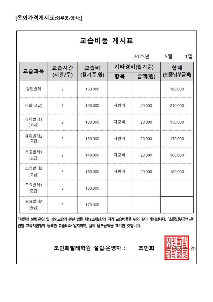 교습비 공지