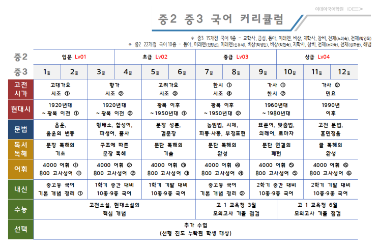 2026년 이데아국어학원 중2·3 커리큘럼