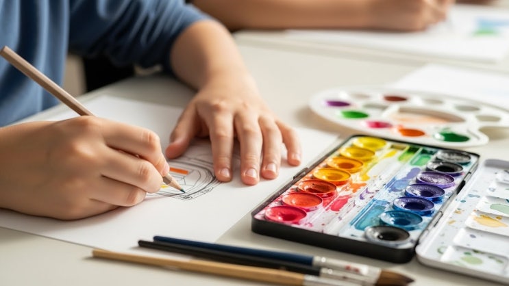 아이 미술을 시작할 때 가장 많이 받는 질문 중 하나는 “어떤 미술도구부터 준비해야 할까요?”입니다. 하지만 미술도구는 잘 그리게 만드는 도구라기보다, 아이의 손, 발달 단계, 집중 방식에 맞아야 하는 매개체에 가깝습니다. 마인드풀아트 미술학원에서는 연령에 따라 ‘결과’보다 경험의 질을 먼저 고려해 도구를 선택합니다. 오늘은 아이 손에 맞는 미술도구를 연령별로 정리해볼게요. 유아·초등 저학년 (5–7세) 잡기 쉽고, 실패해도 괜찮은 도구 이 시기의 아이들은 정교함보다 움직임과 감각 경험이 중요합니다. ✔ 추천 도구 굵은 크레파스, 베이비 오일파스텔 짧고 두꺼운 색연필 손으로 문지를 수 있는 파스텔류 ✔ 중요한 포....... <img src="https://blogthumb.pstatic.net/MjAyNjAxMTBfMjY0/MDAxNzY4MDAyNTA4ODYx.OdXXnc7rcV4xBIISHbEqYGN-JJI0y8ydD3HMjZ0L_rQg.5TFZe4pqoM8GUP5HFpy-BdtwEAZHCBKbpi5XcGCVg_kg.JPEG/Image_fx_%281%29.jpg?type=s3" />