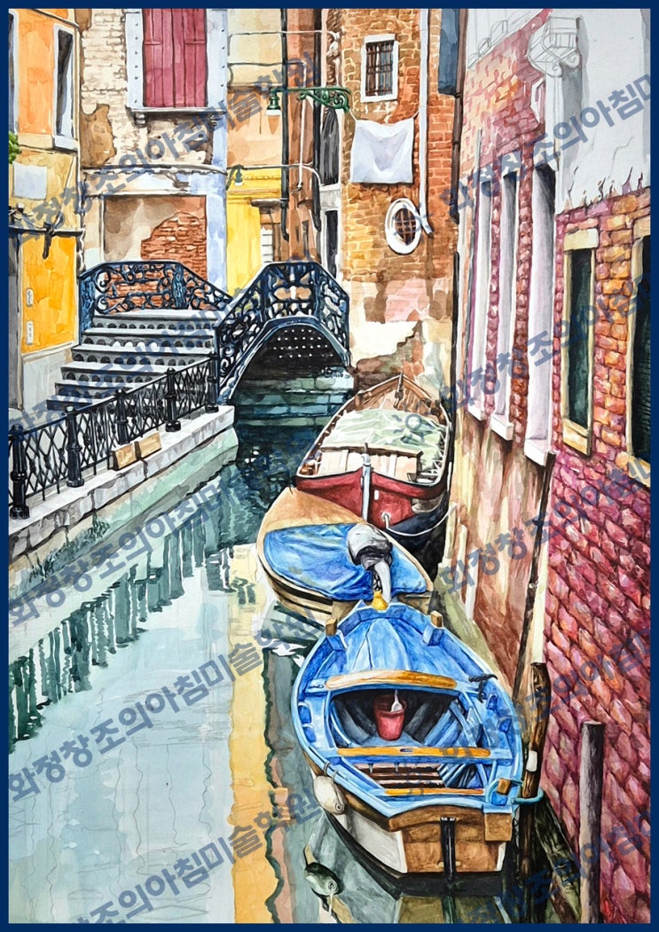 안녕하세요. 화정 창조의아침 미술학원입니다. 빛과 색, 명도로 완성하는 풍경 수채화 이번 포스팅에서는 풍경 수채화 작업을 통해 빛의 표현, 고유색, 그리고 명도 차이를 중심으로 진행한 두 작품을 소개해 드리려 합니다. 풍경화에서 진짜 중요한 것 풍경을 그릴 때 많은 학생들이 처음에는 건물이나 사물의 형태를 정확히 재현하는 데 집중합니다. 물론 형태는 중요합니다. 그러나 화면의 분위기를 실제로 결정짓는 것은 빛이 만들어내는 명도 차이와 사물 고유의 색감입니다. 이 두 가지를 이해하는 것이 풍경 작업의 핵심이라 할 수 있습니다. 베네치아 운하의 빛과 반사 베네치아의 좁은 운하를 배경으로, 철제 난간이 있는 다리와 벽돌 건....... <img src="https://blogthumb.pstatic.net/MjAyNjAzMDVfMTU1/MDAxNzcyNzIwOTE2MDA3.CWEC1y1sQif1qhz5vFrAR42SjijI6eOKCOI0NXFWdVwg.SnRP_YPubok7Zm4nC7_lrpOV10B5uOCo7WsP1gEjSpQg.JPEG/%BF%F6%C5%CD%B8%B6%C5%A9_KakaoTalk_20260305_153946834.jpg?type=s3" />