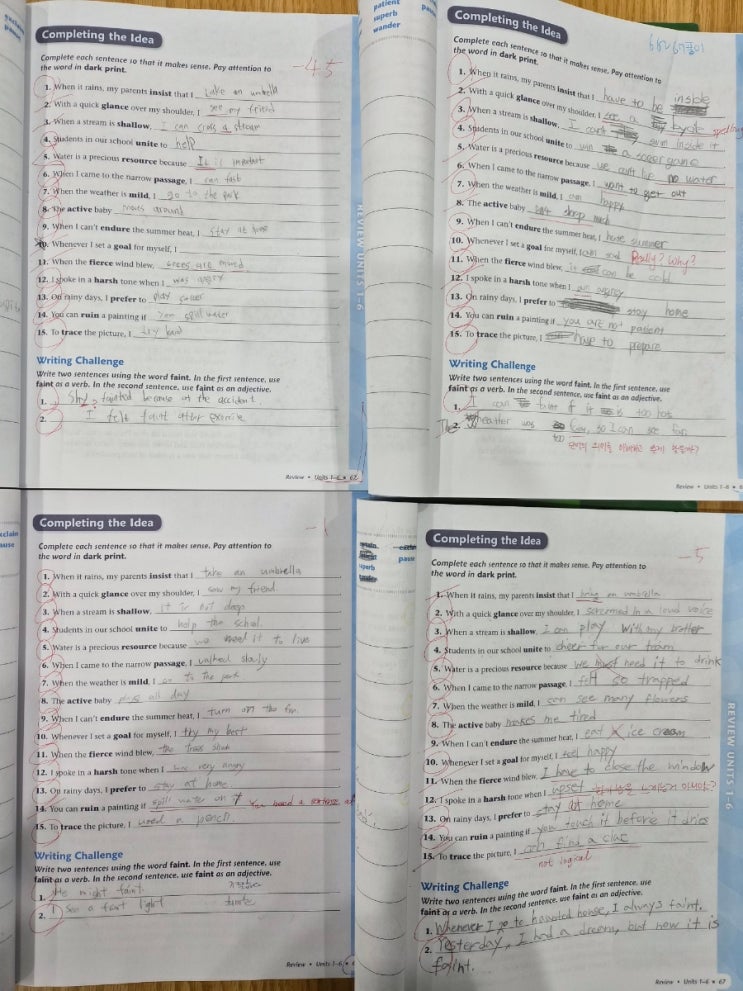 고전에서부터 논픽션까지 다양한 글을 포함하고 어휘의 다양성을 학습할 수도 있지만 제가 보케뷸러리워크숍을 찬양하는 이유 중 하나는 영작연습이 가능해서예요. 아이들의 창의적인 생각도 엿볼 수 있기도 하구요. 영작할 때 반복적이고 고질적인 오류는 동사의 시제나 수일치일거예요. 수년을 학습한 아이들도 피해갈 수 없는 부분이죠. 반복적으로 글을 써보고 수정제안을 받으면 겨우겨우 고쳐지긴 합니다. 엊그제 우리 아이들이 쓴걸 보고 감동을 금치 못해 오랜만에 블로그를 써보네요. #썸잉글리쉬 #장안동현대홈타운영어교습소 <img src="https://blogthumb.pstatic.net/MjAyNjAzMjJfNyAg/MDAxNzc0MTgzMzk4MTg3.1uiLMVyrBDpWkLVVcDTZkgeB4XddfK82R5MjKvH6bSwg.Nv7nY-ig_IY6oyItAmjXEn_xlhNnWKTjz1LSdMWkUOMg.JPEG/900%A3%DF20260318%A3%DF181417.jpg?type=s3" />