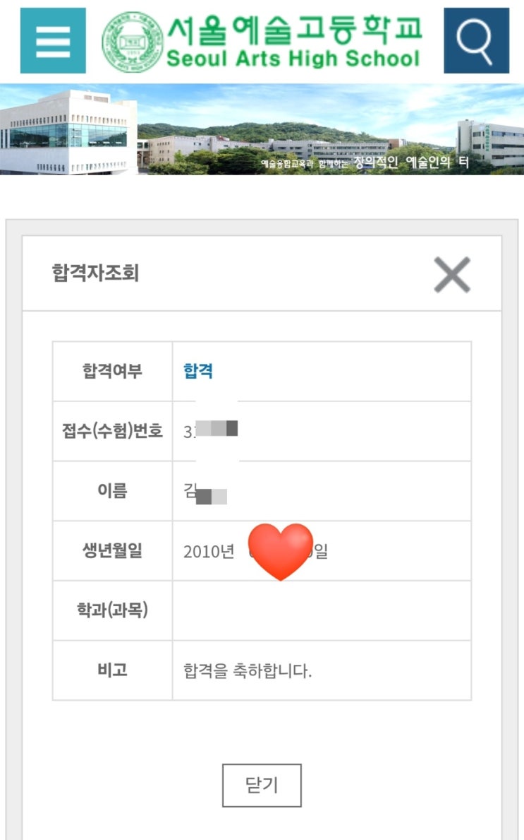 서울예고 합격