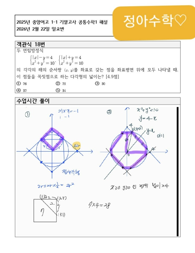2025년 서울중앙여고 고1 공통수학1 1학기 기말고사 기출 풀이