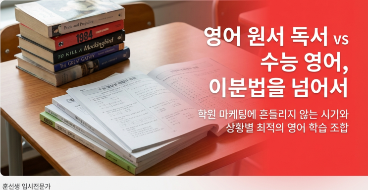 오늘은 대치동에서 입시컨설턴트로 활동하시는 훈쌤의 최근 자료를 공유합니다. 영어교육은 현재 원서파 VS 수능파로 나눠진 것 처럼 보입니다. 하지만, 둘 다 그 나름의 가치가 각각 있습니다. 이제는 믹스 매치로 상황에 맞는 맞춤 교육이 필요합니다. 시기별 믹스 밸런스 제안입니다. <img src="https://blogthumb.pstatic.net/MjAyNjAzMDlfMjkg/MDAxNzczMDU0MzM0MjQw.utp6YSAKq4qGVrrjC6egwhdc64EH_3N3iFxa2Lbzr9og.rOG-FjvzzQEjbHMVRGTvQ9Ikn8DoGdmSz_crFEUnCBYg.PNG/%BF%F8%BC%ADVS%BC%F6%B4%C9%BF%B5%BE%EE1.png?type=s3" />