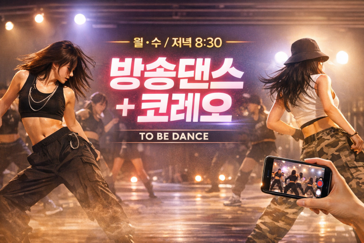 안녕하세요 TO BE DANCE (투비댄스) 입니다! 월·수 저녁 8시 30분, 방송댄스 + 코레오를 함께 배우는 믹스 수업을 진행하고 있어요. 기본은 방송댄스, 하지만 안무를 더 깊이 있게 풀어 코레오 느낌으로 표현력까지 끌어올리는 수업입니다✨ ✨ 수업 특징 ✔️ K-POP 방송댄스 안무 진행 ✔️ 동작을 단순히 외우는 게 아니라 → 라인 · 무게감 · 감정 표현까지 함께 ✔️ 곡에 따라 코레오 스타일 안무도 병행 ✔️ 영상 촬영 & 피드백으로 실력 체크 ✔️ 가끔은 방송댄스 위주 ✔️ 가끔은 코레오 감성으로 지루하지 않게, 재미있게, 하지만 확실하게! 수업 시간 월 · 수요일 저녁 8시 30분 이런 분께 추천....... <img src="https://blogthumb.pstatic.net/MjAyNjAyMTBfMTE5/MDAxNzcwNzIwNzg5NzE2.eBv_OPt5HplNmLYqQHdNCTu1wUtPmyT4ld7yZ0aFvMgg.H4z8c_JIfPiXg_vehBt4Mnn2FYtCN958YEt_4aQZ8zMg.PNG/ssKakaoTalk_20260210_195244967.png?type=s3" />