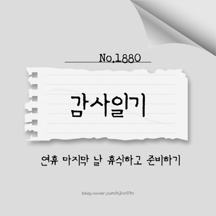 #감사일기1880 2.18(수) 연휴 마지막 날 휴식하고 준비하기 처가에서 아침을 먹고 집으로 나선다. 오후에 장인어른 장모님은 영화보러 가셨을 거다. 새벽에 잠을 좀 설쳐서 집에서 푹 쉬었다. 점심을 나물 비빔밥으로 먹고 저녁은 갈비찜 남은 거에 가오리찜을 만들어보았다. 장모님이 가오리 무침을 포장해주셨는데 가오리찜은 설 직전 시장에서 사온 것이다. 큰 걸 사서 살도 푸짐하다. 막걸리집에서 먹던 기억을 되살려서 만들었는데 아내와 막내는 안먹어도 아들은 맛나게 먹어주니 고맙다. 동네에 사는 사촌누이가 세탁기 세제가 많이 들어왔다며 나눠주신다. 아내는 아들과 학원에 다녀온다. 연휴가 이렇게 끝나간다. 내일은 학....... <img src="https://blogthumb.pstatic.net/MjAyNjAyMTlfMTIy/MDAxNzcxNDY3MTg5NzI1.p-cVwen4Q9_387_lc45k4Md_EuFgvflzZI1ka-oCXvUg.ztw_JWX-FJuKFZJ3KI8GxCZyaZjQ6mi8UKsF4dHcbfsg.PNG/900%A3%DF2412%A3%DF%C5%B8%C0%D3%BF%B5%BC%F6%C7%D0%BF%F8_%C4%AB%B5%E5%B4%BA%BD%BA_%B5%F0%C0%DA%C0%CE%C0%C7_%BB%E7%BA%BB%A3%DF20260219%A3%DF110848%A3%DF0000.png?type=s3" />