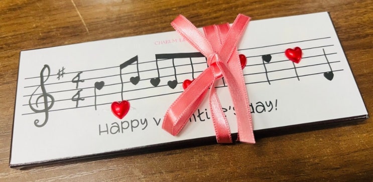 ★ 발렌타인데이를 맞이하여 2월 음악 특강으로 <사랑의 인사> 초콜릿을 만들어보는 시간을 가졌습니다. 먼저, 엘가 <사랑의 인사>의 악보 한 부분을 따라 그려보았습니다. 악보를 읽는 능력(독보력)과 피아노를 치는 스킬을 향상시키기 위해 매일 많은 노력을 하고 있는 예쁜 아이들의 모습을 알기에, 스스로 악보를 꼼꼼히 살펴보며 단번에 그려내는 아이들의 모습에 너무 뿌듯하고, 행복한 시간이었습니다. 악보 따라 그리기(사보)를 끝내고, 아이들 스스로 초콜릿에 스티커를 붙이고, 리본도 묶으며, <사랑의 인사> 초콜릿을 완성하였습니다. 함께 봐주셔서 감사드립니다. <img src="https://blogthumb.pstatic.net/MjAyNjAyMTlfMzQg/MDAxNzcxNDI5NDM5MjYx.Z23sWUG_GXM8V3ki8hwoA4W4dTovIFIZi_BYgkOManwg.4QBPDCoXe_KSP2eaO9OUIYJEYvHxyuEeLe72YR49dn8g.JPEG/202602_%C6%AF%B0%AD1.jpg?type=s3" />