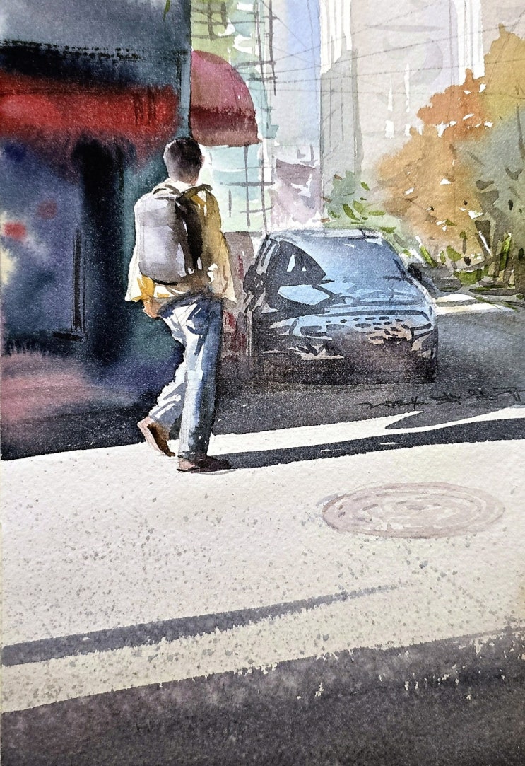 뭉크미술학원 골목 입구,더국수앞,중구청 정문,풍경수채화,어반스케치