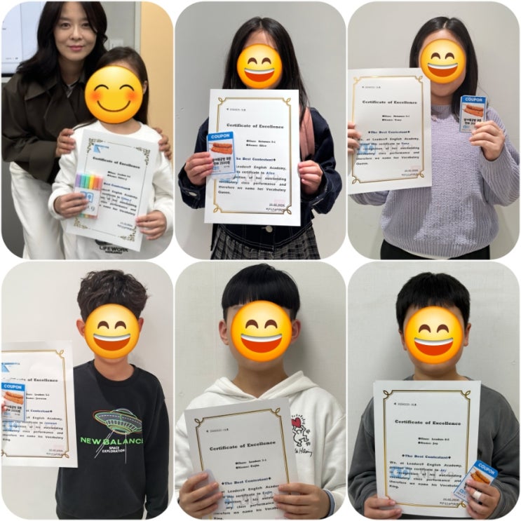 Congratulations to the winners of the March 2026 Vocab King & Queen Contest! At Leaders 9 Language Institute, we accumulate daily vocabulary test scores every three months and recognize the students in each level who achieve the highest scores. Strong vocabulary skills mean strong English skills! <img src="https://blogthumb.pstatic.net/MjAyNjAzMDVfODcg/MDAxNzcyNjcxNTcyMjIy.b7v1UntISoeRiNk2g2rtBD3XVbFKU970XKItRlhyPIsg.Osnvm5uKB_cQ-TKlL4ZuRb5ky72cSEYwJXwmG58ikLUg.JPEG/900%A3%DFGridArt%A3%DF20260305%A3%DF093833610.jpg?type=s3" />