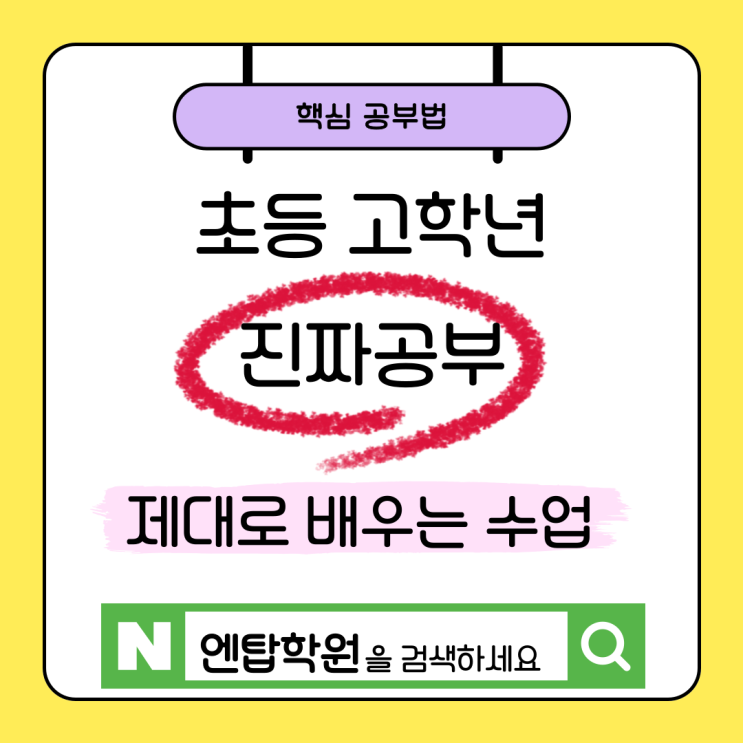 초등 고학년을 위한 진짜공부, 핵심공부법을 제대로 배우는 수업 초등 고학년은 단순히 학년이 올라가는 시기가 아니고 이 시기는 중등으로 연결되는 핵심개념을 제대로 배워야하는 가장 중요한 전환점입니다. 지금 무엇을 어떻게 배우느냐에 따라 중학교 생활과 성적이 달라져요. 그래서 엔탑학원은 초등 고학년을 위해 '지금 배우는 공부'가 아니라 중등을 준비하는 공부를 지도합니다. 초등 고학년에서 배우는 모든 개념들이 중학교에 올라가면 더 깊고 더 어렵게 다시 등장해요. 초등에서 기본개념을 제대로 이해하지 못하면 중등에서 흔들릴 수 밖에 없어요. 그래서 엔탑학원은 초등과정의 중요개념을 다시 정리하고 현재 배우는....... <img src="https://blogthumb.pstatic.net/MjAyNjAyMThfNzIg/MDAxNzcxNDIyODU3MTU4.pKoStgzF3QQuGkQXoSYIuY_swJl-O60rKTj2aF-u0cMg.4vx3QDlLxEsagweyrwcdbJv3NvnKnLwWfta0Tnq-D_0g.PNG/001.png?type=s3" />