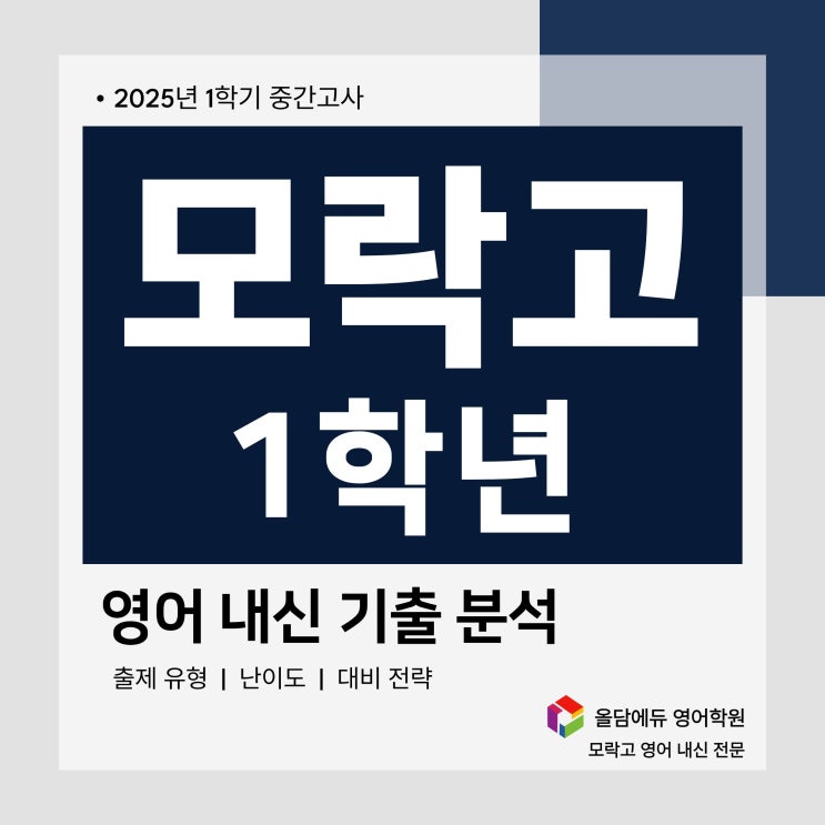 모락고 1학년 영어 내신 시험 분석 (2025학년도 1학기 중간고사 기준) 1. 출제 범위 ▷ 교과서 미래엔 공통영어Ⅰ – 1과, 2과 시험 특징 전체 25문항 중 8문항이 교과서에서 출제 주관식 문항이 모두 교과서 지문에서 출제되어 교과서 학습의 중요도가 높아진 시험 교과서 지문은 단순 참고가 아니라 내신 대비의 핵심 자료 ▷ 외부지문 2024년 3월 고1 전국연합 모의고사 시험 특징 전체 25문항 중 17문항이 모의고사 지문에서 출제 원문 내용 변형이 크지 않은 문항 다수 모의고사 지문 역시 원문 이해와 핵심 문장 정리가 중요 2. 출제 유형 ▷ 객관식 총 23문항 / 90점 객관식 비중이 매우 높은 시험 구조 출제 특징 지문 변형이....... <img src="https://blogthumb.pstatic.net/MjAyNjAxMjdfMTE4/MDAxNzY5NDcwODE1OTk3.WChHNU09jByrg8FkfJeJouKycjz1eCwcLeJ7IZaziqog.qorKBk1244xl4hnSu_3xO4JavFauESI4Vs7QyrT7Pt4g.JPEG/%B8%F0%B6%F4%B0%ED1.jpg?type=s3" />