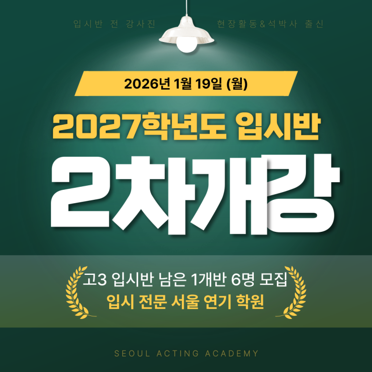 일산연기학원 ) 2027학년도 연극영화방송연예 실기입시 고3입시반 2차 개강일 2026년 1월 19일 (월) 오후 7시
