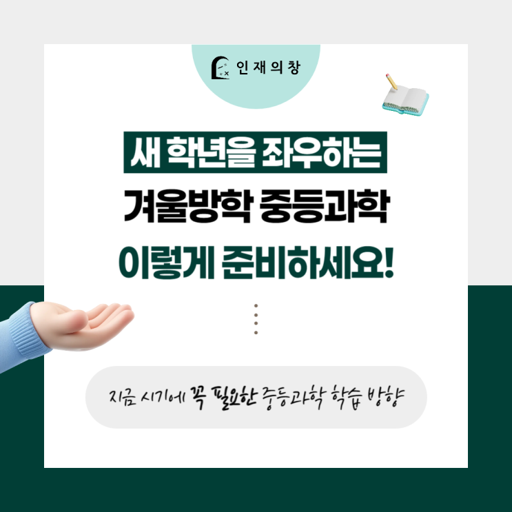안녕하세요. 끝까지 관리하는 심화형 수과학학원 경기 고양시 일산동에 위치한 심화형 수학 과학 학원 인재의 창 입니다! 2026년 새해가 밝았습니다. 새해가 되면 학부모님과 학생 모두 “올해는 공부를 어떻게 시작해야 할까”를 가장 먼저 고민하게 됩니다. 특히 겨울방학의 한가운데에 있는 지금은, 새 학년을 준비할 수 있는 가장 중요한 학습 골든타임이기도 합니다. 중등 시기의 과학은 이 시기를 어떻게 보내느냐에 따라 “점점 어려워지는 과목”이 될 수도 있고, “이해가 쌓이면서 자신감이 생기는 과목”이 될 수도 있습니다. 새해를 맞아 막연한 계획이 아닌, 지금 시기에 꼭 필요한 중등과학 학습 방향을 정리해보려 합니다. ‘....... <img src="https://blogthumb.pstatic.net/MjAyNjAxMDJfMTc4/MDAxNzY3MzA5NDQyNzkw.DiLfaov9pk3dSIPY8MQf99Sdvyus9r2i_EcPHzQmIPEg.RE_nB0DCskB4H9lddiDV1fqLj00XW9SsM8-e4CooaFUg.PNG/%C0%CF%BB%EA_%C1%DF%B5%EE_%B0%FA%C7%D0%C7%D0%BF%F8-001_%281%29.png?type=s3" />