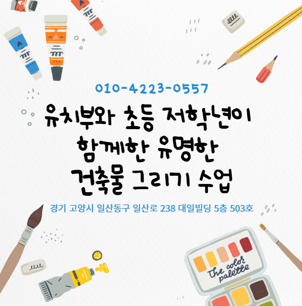 일산동구아동미술 유치부와 초등 저학년이 함께한 유명한 건축물 그리기 수업