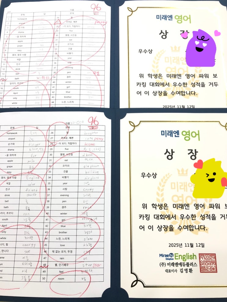 오마초 문촌초 영어학원 미래엔영어 파워보카킹 시험, 아이들의 어휘 실력이 ‘눈에 보이는 성장’으로!