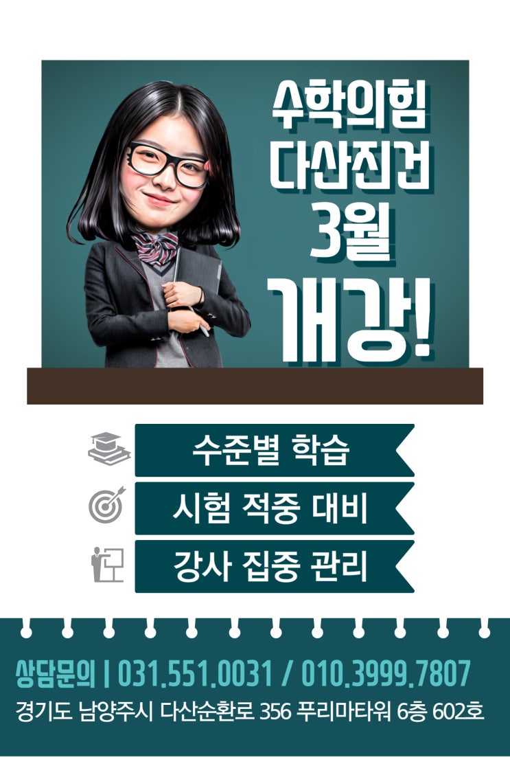 안녕하세요!! 수학의힘 다산진건캠퍼스 입니다~~ 긴 설 명절 끝으로 개학을 준비해야하는 시기입니다. 겨울 방학을 마무리 하면서 새학기 준비를 위해 저희 수학의힘다산진건캠퍼스에서도 3월 개강 소식 전해드려요~ 선발고사 진행 후 분석 및 상담이 이루어지고 있습니다. 우리 아이의 현재 수학 공부에 대한 진단이 필요하거나 앞으로의 방향성을 찾기 위한 학부모님들 또는 학생들은 연락주세요~ *****테스트 비용 1만원(등록시 면제)***** 수학의힘 다산진건캠퍼스는 초.중.고 전문 학원입니다!! 초등 저학년 부터 POM 수학으로 다지고 수학의힘 초격차 수학으로 기본개념부터 응용. 심화. 선행까지 준비할 수 있는 시스템을 갖고있는 탄탄한....... <img src="https://blogthumb.pstatic.net/MjAyNjAyMTlfOTMg/MDAxNzcxNDkzODgxODM2.TU_vL6gw9apaOA14OZ_ylwjgkq5C8HavJN2EPBR1aRYg.Ra0dtzqo5v5xaauPcpOgBWFPTHND8JewX-0mtNxe9qIg.JPEG/%C1%A6%B8%F1%C0%BB_%C0%D4%B7%C2%C7%D8%C1%D6%BC%BC%BF%E4_-001_%2883%29.jpg?type=s3" />