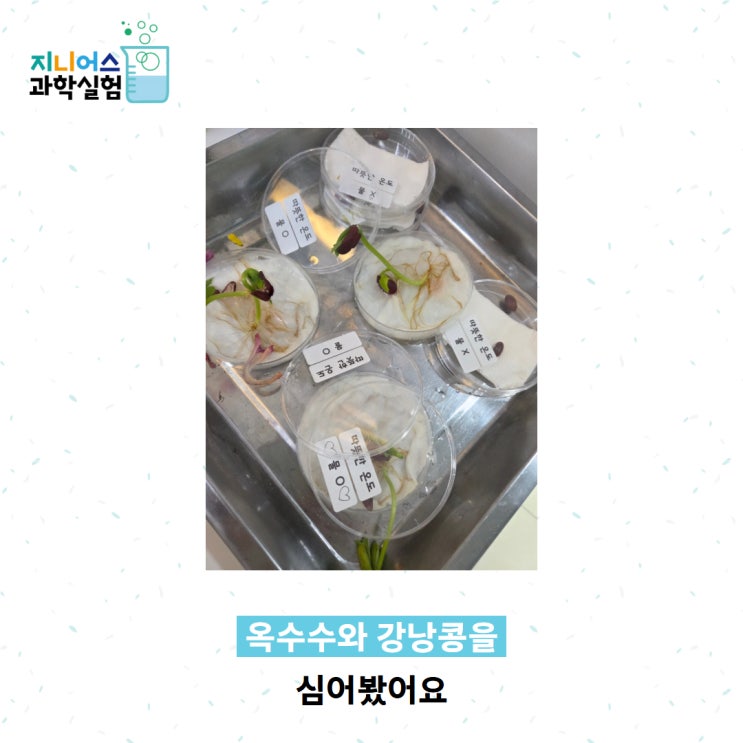 이제 막 초등학교에 입학한 초1 친구들에게, 식물이 싹트는 과정을 알려줬습니다. 봄이 오면서 새학기를 맞아 지니어스 과학실험에도 새로운 학생들이 많이 찾아오고 있습니다. 저 역시 새로운 마음가짐으로 한 번 더 수업 자료를 체크하고, 실험 재료도 꼼꼼하게 챙기게 됩니다. 특히 이제 유치원에서 초1이 된 아이들에게 조금 더 신경이 가는데요. 아이들이 학교 교과 과정을 잘 따라갈 수 있도록, 한 번 더 커리큘럼을 수정 보완하는 시간을 가졌습니다. 최근에는 업사이클 화분에 강낭콩과 옥수수를 심어보는 수업을 진행했습니다. 식물의 한살이, 다시 말해 식물이 싹트는 과정에 대해 알아보았어요. '씨앗만 심으면 다 자라는 건가요....... <img src="https://blogthumb.pstatic.net/MjAyNjAzMjBfMTU2/MDAxNzczOTY5MTc5ODcy.Bw3YqNIuFD3JGOw6j72t7hMmHza7Pup84SoFPRxkXpog.2biIRN6o2sNrr0btjwT_IJfN300SbuKL6xyCR8GELGkg.JPEG/%BA%ED%B7%CE%B1%D7_%288%29.jpg?type=s3" />