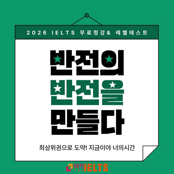 2월 IELTS 시작? 지금 미리 알아봐야 하는 이유! 2월이 되면 아이엘츠 상담에서 가장 많이 나오는 질문이 있습니다. “지금 시작해도 늦은 거 아닌가요?” 이 질문을 한다는 건 이미 마음속에 조급함과 불안이 동시에 있다는 뜻입니다. 하지만 먼저 분명히 말씀드릴게요. 2월에 시작한다고 해서 모두가 가능한 건 아닙니다. 그래서 미키어학원에서는 ✔️ 지금 시작해도 되는 사람 ✔️ 시간이 더 걸리는 사람 ✔️ 왜 점수가 안 오르는지 를 한 번에 정리해보려고 합니다. 1️⃣ 2월 IELTS 공부 시작, 어려운 이유? 의외로 많은 분들이 “일단 시작하면 어떻게든 되겠지”라고 생각합니다. 하지만 아래에 해당한다면 지금 시작해도 결과가 안 나....... <img src="https://blogthumb.pstatic.net/MjAyNjAyMDRfMTI2/MDAxNzcwMTc0MDgzNjI0.7sbkiGOs8ChSAd8aD6IvJryuXqDmuSUQi4WB6GWkQlwg.3-fkOcCllbxs8RVo0Fig5SNNiK6XYo85-vuedrci4A0g.PNG/20260204_001.png?type=s3" />