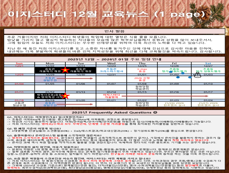 금호동영어학원 이지스터디 겨울학기개강소식과 마감,특강 등 정보