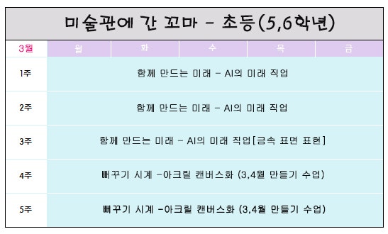 [보라매미술]미술관에간꼬마 미술 3월 수업 계획표