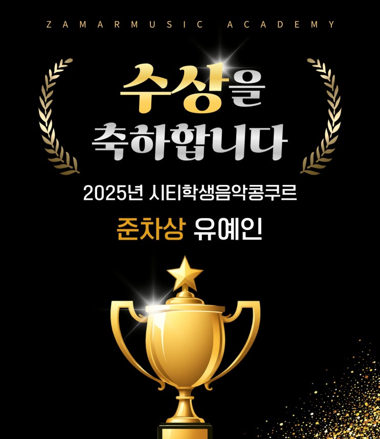 [자마르 실용음악학원] 2025시티학생음악콩쿨 준차상 유예인 학생
