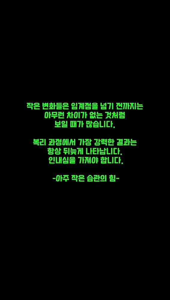 [이곡동영어학원] 성적이 제자리걸음인가요? '임계점'을 기다리는 인내의 힘[김용진영어학원] 안녕하세요, 이곡동 김용진영어학원입니다. 공부를 하다 보면 누구나 이런 고민에 빠지는 순간이 옵니다. "매일 단어를 외우고 문제를 푸는데, 왜 성적은 그대로일까?" "나만 뒤처지는 건 아닐까?" 열심히 노력해도 결과가 눈에 보이지 않을 때, 우리를 지탱해 줄 문장 하나를 소개합니다. > "작은 변화들은 임계점을 넘기 전까지는 아무런 차이가 없는 것처럼 보일 때가 많습니다. 복리 과정에서 가장 강력한 결과는 항상 뒤늦게 나타납니다. 인내심을 가져야 합니다." — 제임스 클리어, 『아주 작은 습....... <img src="https://blogthumb.pstatic.net/MjAyNjAzMTFfNjMg/MDAxNzczMjI0OTA4NzM0.V32XMrbUGcxn8Kd930hrksv3SFFDmqaiFNkYiLCJ1QIg.MQdYkvFEcN94yfDAid0p8DwDs8H9U4bVeQKV9H82_6Qg.JPEG/IMG_2960.jpg?type=s3" />