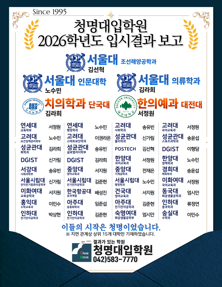 [청명대입학원]2026학년도 입시결과보고