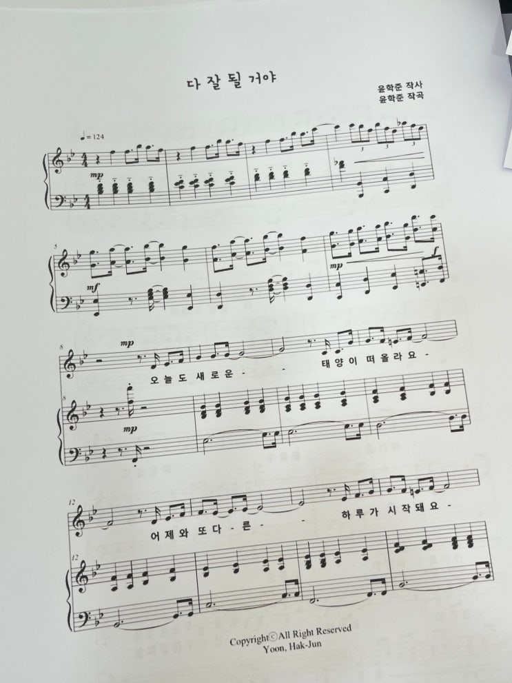 안녕하세요 울산 동구 에 있는 피아노교습소 , 고은피아노입니다 3/10 화요일은 화요특강이 있는 날은 아니지만 아이들과 합창곡을 듣고 배우고 함께 불러보면 좋을 것 같아서 급히 ( 엠비티아이 완전 대문자 PPPPPPP ) 악보를 프린트 해봤어요 가사만 읽어봐도 힘이되고 용기가 되는 가사입니다 :) 아이들에게 , 그리고 저에게도 해주고싶은 메세지같아요 ㅎㅎ 오늘도 새로운 태양이 떠올라요 어제와 또 다른 하루가 시작돼요 이제는 혼자 고민하지 말아요 어렵고 힘들 때 두렵고 외로울 때 기대어 위로받고 싶을 때 주위를 둘러 봐 함께 할 친구가 있어 힘을 내 내일이 오기 전 다시 일어서는 거야 다 잘될 거야 다 잘될 거야 다 잘 될 거야 모....... <img src="https://blogthumb.pstatic.net/MjAyNjAzMTFfMzgg/MDAxNzczMjEyNTY1MDIw.auSPSpta4Jo1Ld8czGgZyGs-wCzXWO345Kj5qa2X4-Eg.JiWSIKcy0HdOk_IRpK3FJ89Nq_uLmOJZHS5XQTuSRncg.JPEG/KakaoTalk_20260311_155244515.jpg?type=s3" />