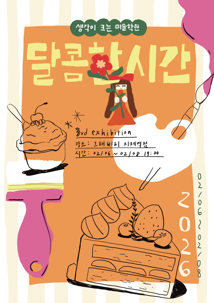 3nd Exhibition 생각이 크는 미술학원 세번째 뽐내기 전시 더샵 지제역 센트럴파크 1단지 맞은편에 위치한 생각이 크는 미술학원 입니다. 안녕하세요. 생각이 크는 미술학원입니다 :) 26년 2월 세번째 뽐내기 전시를 선보입니다. 동삭동 카페 (그래비티 지제역점) 에서 진행되는 전시입니다. 아이들에게 귀한 시간이 되길 바라며 준비한 외부 전시이니만큼 스스로의 힘으로 많은 작품을 만들어 낼 수 있도록 만들어진 시간입니다. 그 여정의 마무리가 벌써 코 앞으로 다가왔어요 아이들이 전시를 준비하며 보낸 시간 속 재미난 얘기들, 그리고 한해동안 열심히 성장한 우리친구들의 이야기를 전해드리기 위해 전시기간 모든 시간 제가 머무를 예....... <img src="https://blogthumb.pstatic.net/MjAyNjAyMjRfMjE1/MDAxNzcxOTM3NDI3NjY5.Jc6Sl29mSXfJDK9c0ngcZcLQrnrBldBUAvnkg-4462Mg.E_SgXJ0rqhz3c6-i_NPzqNMGVTD5r7aT2FfpeumS0ywg.JPEG/IMG_0553.JPG?type=s3" />