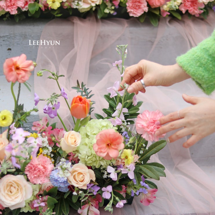 안녕하세요 이현꽃예술학원입니다 :) 오늘은 웨딩 파티 스타일링반에서 제작한 #단상장식 작품을 소개해드릴게요! 이번 수업에서는 단상 장식을 배워보았어요~ 단상 장식이란 결혼식에서 주례단상, 사회자 단상, 또는 무대(메인 스테이지) 앞쪽을 장식하는 꽃 연출을 말해요 오늘은 전체적으로 러블리한 무드로 제작해보았어요 봄이 다가오니 예쁜 꽃들이 가득해서, 그 자체로 행복한 수업 시간이었답니다 :) 파스텔 톤을 베이스로 오렌지 튤립과 비비드한 포인트 컬러를 더해, 전체 분위기가 심심하지 않도록 연출했어요 야외 웨딩에 특히 잘 어울릴 것 같은 무드죠?ㅎㅎ 웨딩 파티 스타일링반에서는 코사지, 부토니에 신부대기실 장....... <img src="https://blogthumb.pstatic.net/MjAyNjAzMDJfMjQw/MDAxNzcyNDIyMTk0NTEw.PoVUG9sqJ4qNqyZ-OiE1OCiyTo1chtqW6S49iMkI6kog.yhDg_4OlGTfIr9IyjgOjx0frKmo7yCkO-YwEoYFU9f4g.JPEG/IMG_0432.jpg?type=s3" />