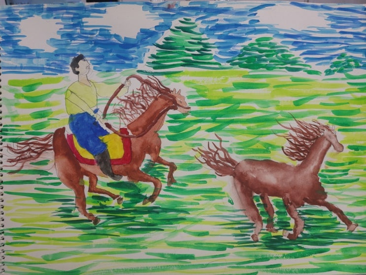 동물의 형태와 달리는 모습의 에너지를 시각화하는 표현 우리 아이들과 함께 동물의 움직임을 관찰하고 그림 속에 속도감을 어떻게 표현하는게 좋을지 이야기를 나누어 봤습니다. 요즘 형태감과 표현력이 부쩍 늘어난 초등학교 2학년 친구들입니다. 말의 근육은 물감의 농도를 조절하여 채색하고 바람에 날리는 갈기와 꼬리로 더 멋진 그림이 되었습니다. 아프리카 영양의 가늘고 긴 다리로 땅을 박차고 뛰어 오르는 순간도 잘 포착했습니다. 단순히 동물을 그리는 것을 넘어 근육의 움직임과 주변 풍경의 변화를 통해 '달리기'라는 에너지를 시각화해보는 수업이었습니다. 동물의 형태를 관찰하는 것뿐만 아니라 선의 방향과 굵기에 따....... <img src="https://blogthumb.pstatic.net/MjAyNjAxMTlfMjIg/MDAxNzY4Nzg1OTk2MzY4.2Y3MC8if18gOdxmQNE3ML0mZ15Tepqo8TanpPvMe-2Yg.J8EXLfy4QjpUkbHGSZamoQ-J_NjH_e5oBLvV_dVWecwg.JPEG/900%A3%DF20260116%A3%DF162528.jpg?type=s3" />
