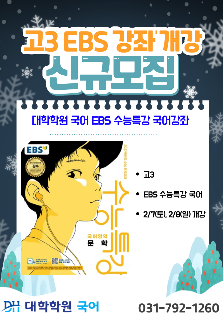 안녕하세요. 미사에서 국어 잘 가르치는 학원, <대학학원국어학원>입니다. EBS 수능특강은 한국교육과정평가원에서 감수 후 EBS에서 출간하는 수능대비 연계교재입니다. 입시를 준비하는 수험생에게는 수능 준비 필수 교재입니다. 수능뿐만 아니라 고3의 경우 학교내신시험 역시 EBS수능특강 연계교재를 시험범위로 출제합니다. 저희 <대학학원국어학원>에서는 EBS수능특강 및 연계교재의 모든 분야를 꼼꼼하게 짚는 강의와 함께 <대학학원국어학원>만의 자료를 통해 내신과 수능을 함께 대비할 수 있도록 수업을 구성하고 있습니다. <대학학원국어학원>의 고3 커리큘럼을 잘 따라와 준 학생들은 고3 내신과 수능에서 좋....... <img src="https://blogthumb.pstatic.net/MjAyNjAxMjdfMzgg/MDAxNzY5NDk2MzY5ODg5.NEfO1naWohICgaqlrlxqb-4QkEnW9GAaoh_G9Q71augg.ywh72OydWnPW5ogYA54iA-PUrwNh76Cub2fKv7-M7nog.PNG/image.png?type=s3" />