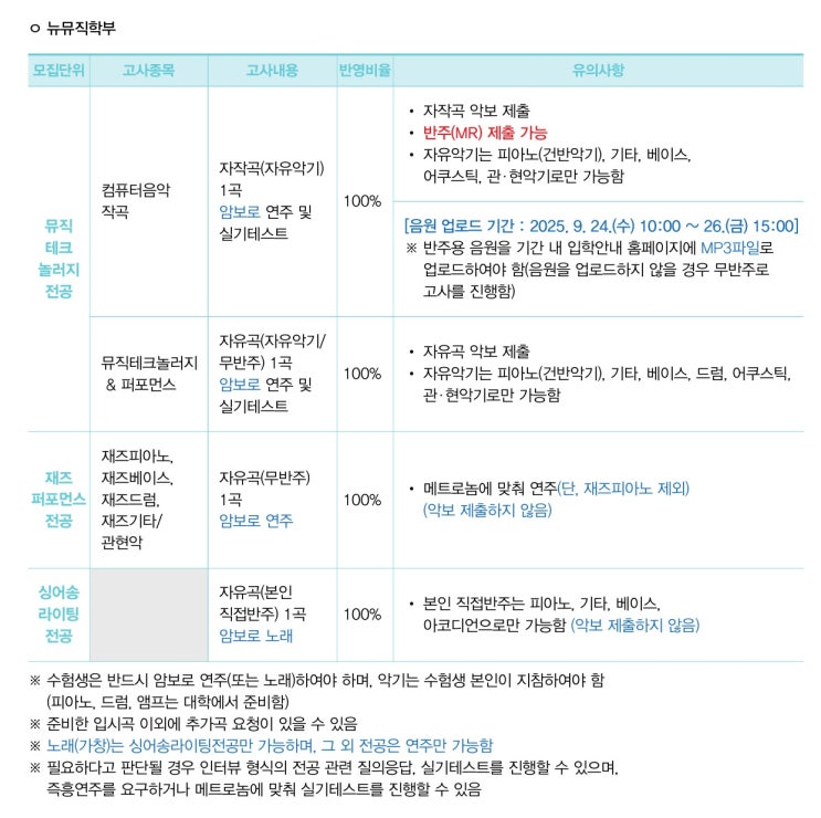 안녕하세요~~~ 오늘은 백제예술대학교 실용음악과 수시 및 정시 경쟁률을 살펴보고자 합니다 단국대학교 실용음악과(뉴뮤직과)는 싱어송라이터, 컴퓨터음악작곡, 보컬, 건반, 기타, 베이스, 드럼 등 세부 전공을 갖추고 세계 음악 시장 트렌드를 공부하며 체계적인 실기 교육으로 연주 실력과 창작 능력을 겸비한 음악인을 양성하고자합니다. 이론과 실기 융합 교육을 통해 실력 있는 연주자 및 창작자를 배출하며 다양한 실전 무대 경험을 제공하는 것이 특징입니다. ▶ 2025학년도 단국대학교 실용음악과 수시 경쟁률 ▶ 2025학년도 단국대학교 실용음악과 수시 경쟁률 단국대학교 실용음악과(뉴뮤직학부)는 2025학년도 65명 모집에 72....... <img src="https://blogthumb.pstatic.net/MjAyNjAyMjRfMjI1/MDAxNzcxOTE2NTI4OTA5.0AHNdQC_oLPo-GXG9yr-St_U58J2eKehS447fXTzb0wg.A5bzeuLyBSOUhpZbpH7a5sRuAzcawp9-sdrI7eP0DGsg.JPEG/%B4%DC%B1%B9%B4%EB%C7%D0%B1%B3%28%C1%D7%C0%FC%29_2026%C7%D0%B3%E2%B5%B5_%BC%F6%BD%C3%B8%F0%C1%FD%BF%E4%B0%AD_88.jpg?type=s3" />