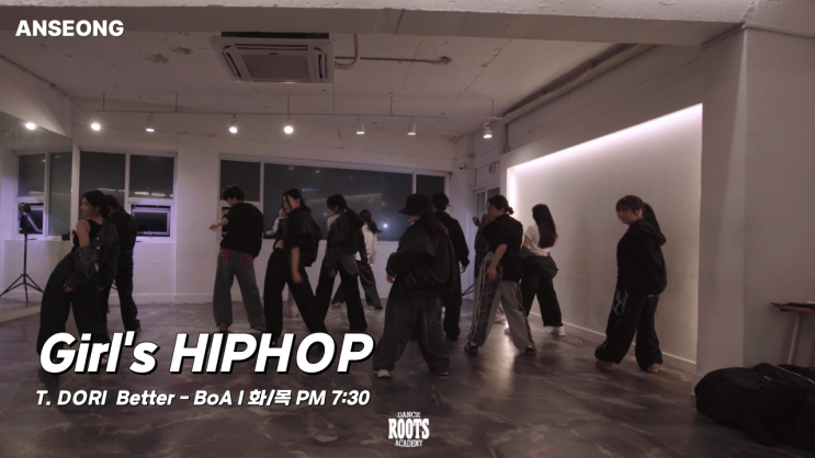 안녕하세요. 안성 루츠댄스아카데미(ROOTS DANCE ACADEMY) 입니다. 이번에 소개해드릴 영상은 걸스 힙합(Girl’s HipHop) 수업 영상으로, 보아(BoA)의 Better 음악에 맞춰 진행된 T. DORI 선생님의 수업 장면입니다. 수업 음악 BoA – Better 이 곡은 리듬과 감정 표현이 모두 중요한 곡으로, 학생들이 음악 해석 능력과 표현력을 함께 키우기에 매우 적합한 곡입니다. 걸스힙합 수업, 무엇을 배우나요? 루츠댄스아카데미의 걸스힙합 수업은 단순히 안무를 외우는 수업이 아닙니다. ✔ 기본 힙합 동작과 바운스 ✔ 리듬을 타는 방법 ✔ 곡의 분위기를 몸으로 표현하는 방법 ✔ 동작의 강약 조절과 디테일 ✔ 무대에서 자신 있게 표현하....... <img src="https://blogthumb.pstatic.net/MjAyNjAyMjRfOTYg/MDAxNzcxOTIxNTEwMjM0.-_jSDiBIS_m4-n0bqmX-LQZ-DTaNja40ICAyHZC1xc4g.C7tl5WLDh4ZJvpZdsfetBdGMLk6XsfdlS9Wg4P-4Yegg.PNG/%25EC%25A0%259C%25EB%25AA%25A9%25EC%259D%2584-%25EC%259E%2585%25EB%25A0%25A5%25ED%2595%25B4%25EC%25A3%25BC%25EC%2584%25B8%25EC%259A%2594_-004_%25282%2529.png?type=s3" />