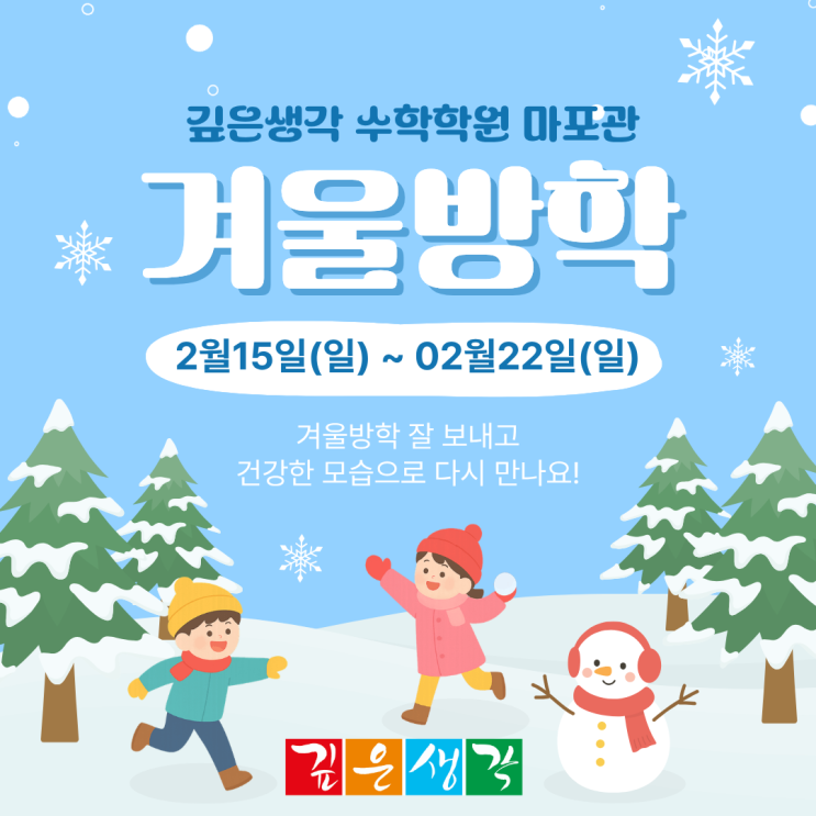 [공지] 깊은생각 수학학원 마포관 겨울방학 안내 입니다.