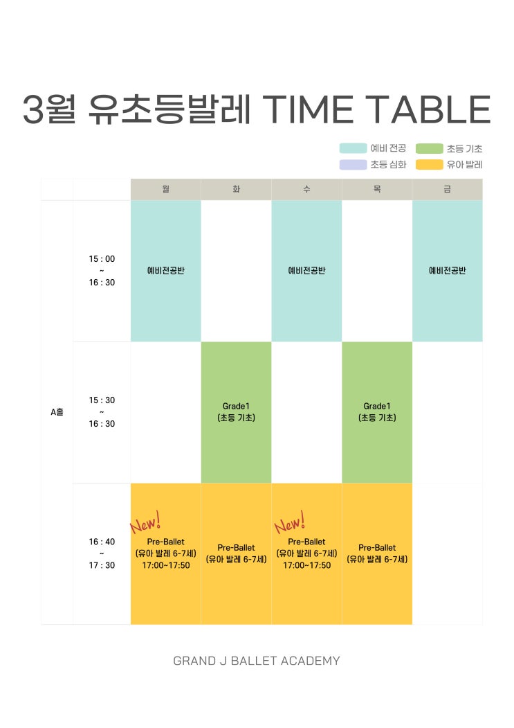 송파 그랑제이발레아카데미 3월 시간표 안내