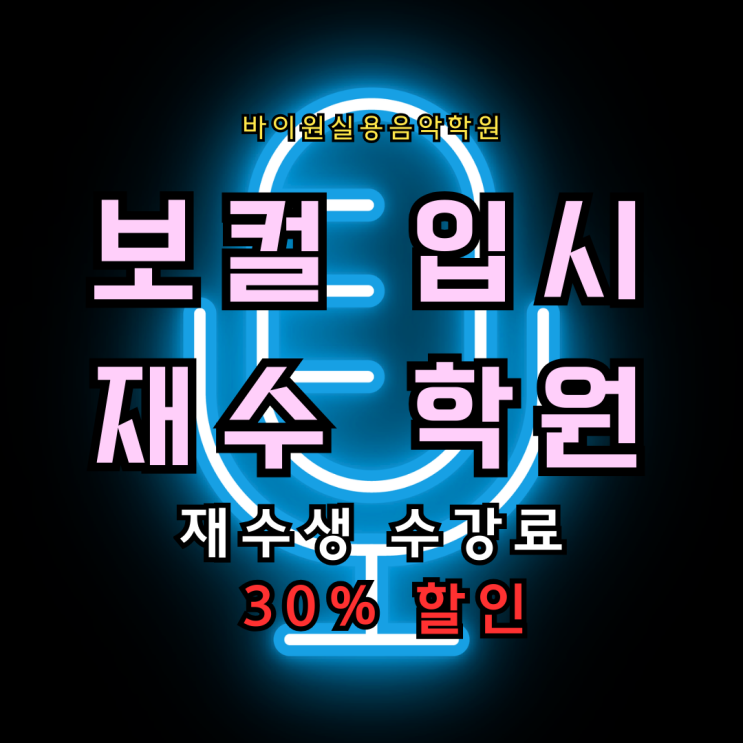 안녕하세요 부산보컬레슨전문 바이원실용음악학원입니다. 이번에 보컬 입시 재수생반을 오픈하였습니다. 기존에 고 3 현역 입시 때와는 달리 수강료가 할인되었으며, 부산보컬입시 바이원실용음악학원은 소수정예로 1대1 개인 맞춤 케어가 들어가기에 더이상의 재수는 없다는 마음으로 더욱 꼼꼼한 입시 수업을 준비하였습니다 ✅ 보컬입시재수반 ◼ 소수정예 맞춤 케어 ◼ 나에게 맞는, 입시에 맞는 곡 선정 ◼ 매 수업 레코딩 병행으로 수업 내용 기록 공유 ◼ 무료 월말평가 참여로 실기 전 긴장감 완화 ◼ 무료 보컬 스터디 그룹 레슨으로 이론, 퍼포먼스, 감정 익히기 ◼ 개인 성향을 파악한 맞춤 입시 전략 ◼ 연습실 상시 사용 가능 본....... <img src="https://blogthumb.pstatic.net/MjAyNjAzMDZfMTUw/MDAxNzcyNzg1Nzg3NzAx.qIuu-ZzuWjEJ2QAYtlr58p7s5BjbRIityj00J3fD6W8g.EBDE6D8HWTk8-4NZD_DKulAz52fFoEpNR5-IOQcXeX0g.PNG/%BA%B8%C4%C3_%C0%D4%BD%C311.png?type=s3" />