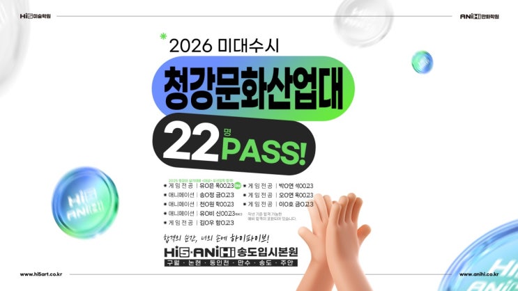 주안Hi5(하이파이브) & AniHi(애니하이) - 2026 수시 합격 결과 [인천미술 미추홀구미술 주안 미술 미대입시전문 미술 입시 본원 직영 주안 애니]