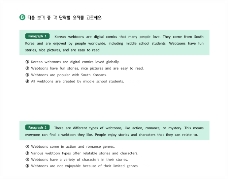 안녕하세요. 채움학원 삼산점입니다. 지난 포스팅에서 말씀드렸죠. 삼산점 초등부 리딩 수업은 단순히 “읽었다”에서 끝나지 않고, 중등 수준의 ‘독해’ 방향으로 수업을 끌어갑니다. 오늘은 그중에서도 가장 핵심 훈련 하나를 공개하려 합니다. 초등 학부모님들께는 사소해 보일 수 있지만, 고등부 성적을 사실상 좌우하는 결정적 능력. 바로 “문단별 주제 찾기” 입니다. 해석을 잘하면 영어를 잘하는 걸까요? 아이들이 영어 지문을 읽으면 의외로 한국어로 곧잘 바꿉니다. “옛날에 한 소년이 살았습니다…” “지구는 점점 뜨거워지고 있습니다…” 그런데 이렇게 물어보면 멈추는 경우가 많습니다. “그래서… 이 글이 진짜 하....... <img src="https://blogthumb.pstatic.net/MjAyNjAyMTJfNzIg/MDAxNzcwODg3MTgzMjcx.m9Qfe0H8CpN7WZ5EZ298SBHjlpGMKOZxvmORGItsMn0g.nZcjSg_VyaPHpJzacHw2Fy7BCcCGmYUyunEhvXlHiFIg.PNG/image.png?type=s3" />