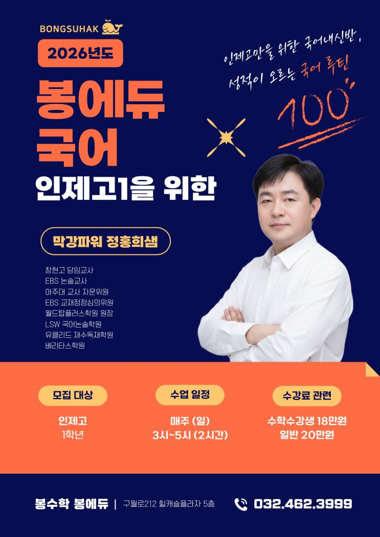 구월동 수학학원) 봉수학 인제고 1학년생을 위한 국어내신반 개강!