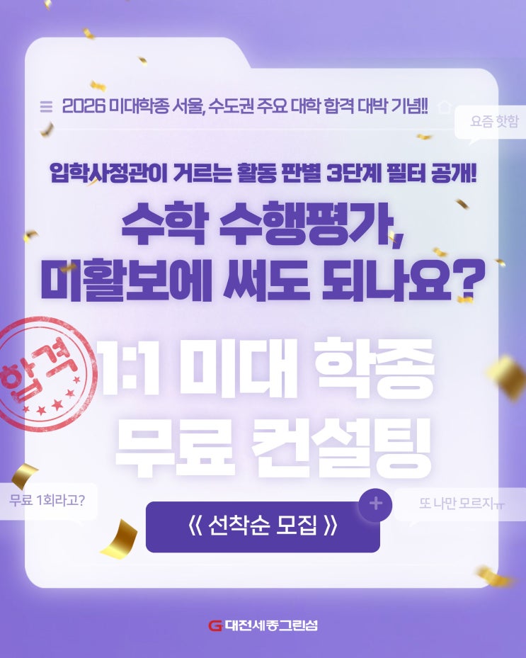 대전 세종 1:1 미대 학생부종합전형 무료 컨설팅! / 2026 학종 대박기념