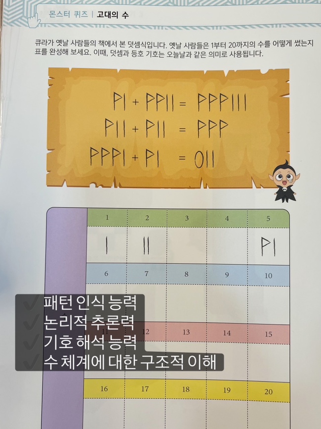 안녕하세요 금곡동 초등 친구들이 재미있게 수학을 시작할 수 있는 곳은 단언코 모아제이매쓰 같아요 자신있게 얘기할 수 있는 이유는 제이쌤 원장이 직접 아이들과 소통한다는 점과 몬스터매스 교구와 교재로 아이들이 손으로 생각하는 사고력수학을 할 수 있기 때문이지요 오늘 보여드릴 내용은 몬스터매스 지면 활동으로 고대 수 체계 탐구입니다 고대 수 표기법을 탐구하는 지면 활동을 통해 아이들은 단순히 ‘정답을 맞히는 과정’이 아니라 규칙을 발견하고 구조를 분석하는 사고 경험을 했습니다. 기호의 반복과 조합 속에서 수의 규칙성을 스스로 추론하며, 가설을 세우고 검증하는 과정을 거치는 모습이 인상적이었는....... <img src="https://blogthumb.pstatic.net/MjAyNjAyMjFfMjc4/MDAxNzcxNjY0NzE2NTIx.A2mg4t2DwA-mLJSPlnfpCFPnm7CaY1Q7xp5fBm23DGQg.kZmvWHTfBnnyfQb-H3IDTFhxoXnxKJByUTovrxQ74OMg.JPEG/E95AF686%A3%ADFEB4%A3%AD4098%A3%ADAFA2%A3%ADA8F02AEA91F8.jpg?type=s3" />