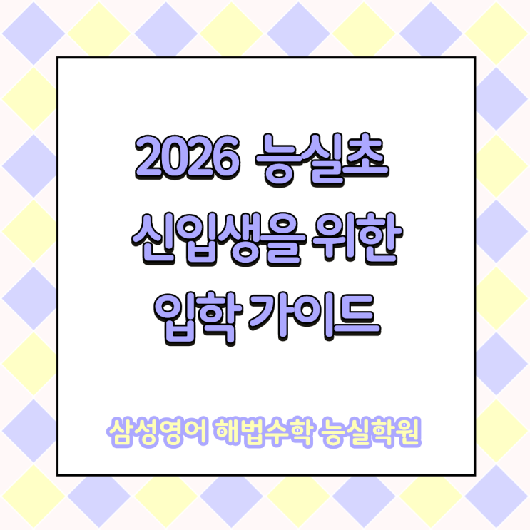 안녕하세요!! 아이의 미래를 디자인하는 삼성영어 해법수학 능실학원입니다. [호매실동 수학학원 & 호매실동 영어학원] 삼성영어 해법수학 능실학원 초등학교 입학, 설렘만큼 준비도 필요해요 아이의 첫 학교생활. 설레는 마음과 동시에 ‘내가 뭘 더 챙겨줘야 하지?’ 하는 걱정도 함께 오시죠?! 유치원과는 전혀 다른 시스템, 수업 시간, 준비물, 규칙까지… 마의 작은 준비가 아이의 1학년을 훨씬 안정적으로 만들어 줍니다. 이번 가이드는 초등학교 입학을 앞둔 학부모님들이 꼭 알아두면 좋은 핵심만 정리해 드릴게요. 1. 입학 준비물, 미리 알면 마음이 편해요. 입학 시즌이 되면 준비물 때문에 정신이 없죠. 하지만 핵심만 알면 어렵....... <img src="https://blogthumb.pstatic.net/MjAyNjAyMjRfMjYy/MDAxNzcxODYzMzI1MTU3.jaes9Pgg6uHh1Zm649eDHXN2NVUhOgkYQjMScEUTjCIg.gFqiuhILUWcjRIOFqKWlqT6YxfnGonQxpb8WQdHTvk8g.PNG/%C7%D0%BB%FD%B0%A3%B4%E3%C8%B8%BD%E6%B3%D7%C0%CF_%283%29.png?type=s3" />