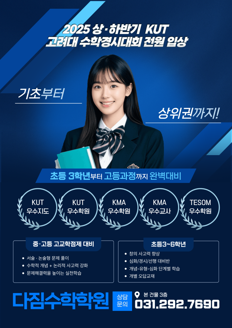 ❓ 왜 이름이 ‘다짐’일까요 학원을 시작하며 가장 오래 고민한 것은 커리큘럼보다도 이름이었습니다. 수학은 빠르게 앞서가는 것이 아니라 흔들리지 않는 마음에서 시작된다고 믿기 때문입니다. 학생이 스스로 “이번에는 해보겠다.” “끝까지 풀어보겠다.” 라고 마음먹는 순간, 그때 비로소 진짜 공부가 시작됩니다. 그래서 이름을 다짐수학학원이라 정했습니다. 수학은 ‘이해’에서 시작합니다 많은 학생이 수학을 어려워하는 이유는 문제를 몰라서가 아니라 왜 그렇게 되는지 설명해 본 적이 없기 때문입니다. 다짐수학학원은 정답을 맞히는 수업이 아니라 과정을 말하게 하는 수업을 합니다. ✔ 개념을 정확히 이해하고 ✔ 풀이 과....... <img src="https://blogthumb.pstatic.net/MjAyNjAyMjVfMjcw/MDAxNzcyMDEwNDU5NzQw.ikNwMAW1BmhrwulWi_hVm38jKIT56gb_DWxTHQ6ecUog.8QbeDmjeBMz-ewyzXtxPEqDkQ6p8ZFdNRi8eRRBflwcg.PNG/%C1%A6%B8%F1%C0%BB_%C0%D4%B7%C2%C7%D8%C1%D6%BC%BC%BF%E4._%281%29.png?type=s3" />