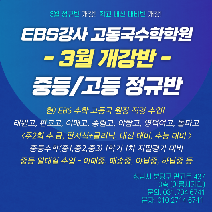 EBS강사 고동국 수학 3월 개강 정규반 고등부 판서식 내신 대비 수능 대비 중등부 개별진도 현행 기초 심화 수업 안내 이매수학학원 야탑수학학원 분당수학학원