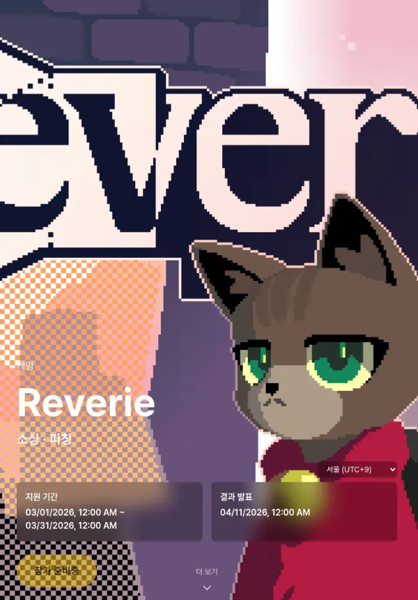 꿈을 탐험하러 떠나볼까요?? 안녕하세요~ 일산 덕이동 실용음악학원 사운드맵실용음악학원입니다~!! 오늘은 공모전 소식으로 돌아왔습니다~!! 게임 음악, bgm에 관심있는 분들이라면 오늘의 소식을 눈뜨고 확인해주세요!! 게임 소개를 해드리면 "Reverie"는 꿈의 세계를 모험하는 스토리 기반 퍼즐 게임입니다! 플레이어는 공간을 물체처럼 조작하며, 사람과 동물들을 만나 세계의 비밀을 풀어가는 내용입니다 차분하고 낯선 분위기, 탐험 감성을 담은 느낌을 잘 활용하여 BGM을 만들면 되겠죠~?? 그럼 함께 세부사항을 확인하러 가보실까요! 몽환적인 퍼즐 어드벤처 BGM 공모전 ▶ 접수 기간 2026.03.01 00시 - 2026.03.3....... <img src="https://blogthumb.pstatic.net/MjAyNjAyMTFfMTEy/MDAxNzcwODAyNTk4MzUy.cxAwL4M2CXAiFC6xT5xsaQpviMTyXtKjmnZYfQ_-baQg.LUI_kFMCmQGySzjLCtaUu6Axtn_lfnOmPXJqzuS6kMUg.PNG/image.png?type=s3" />